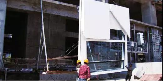 (第一塊雅泰裝配式單元幕墻板塊順利起吊安裝)