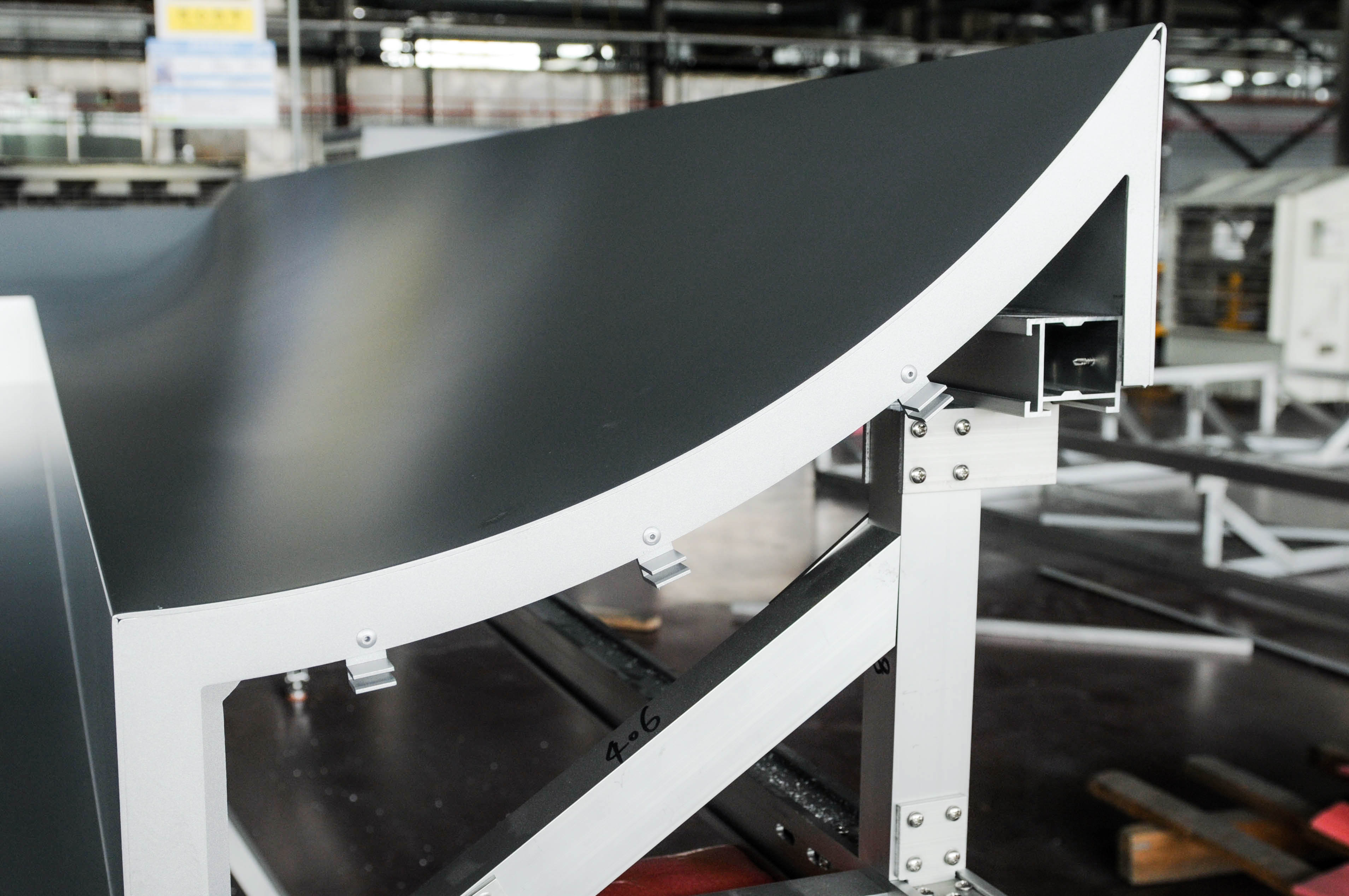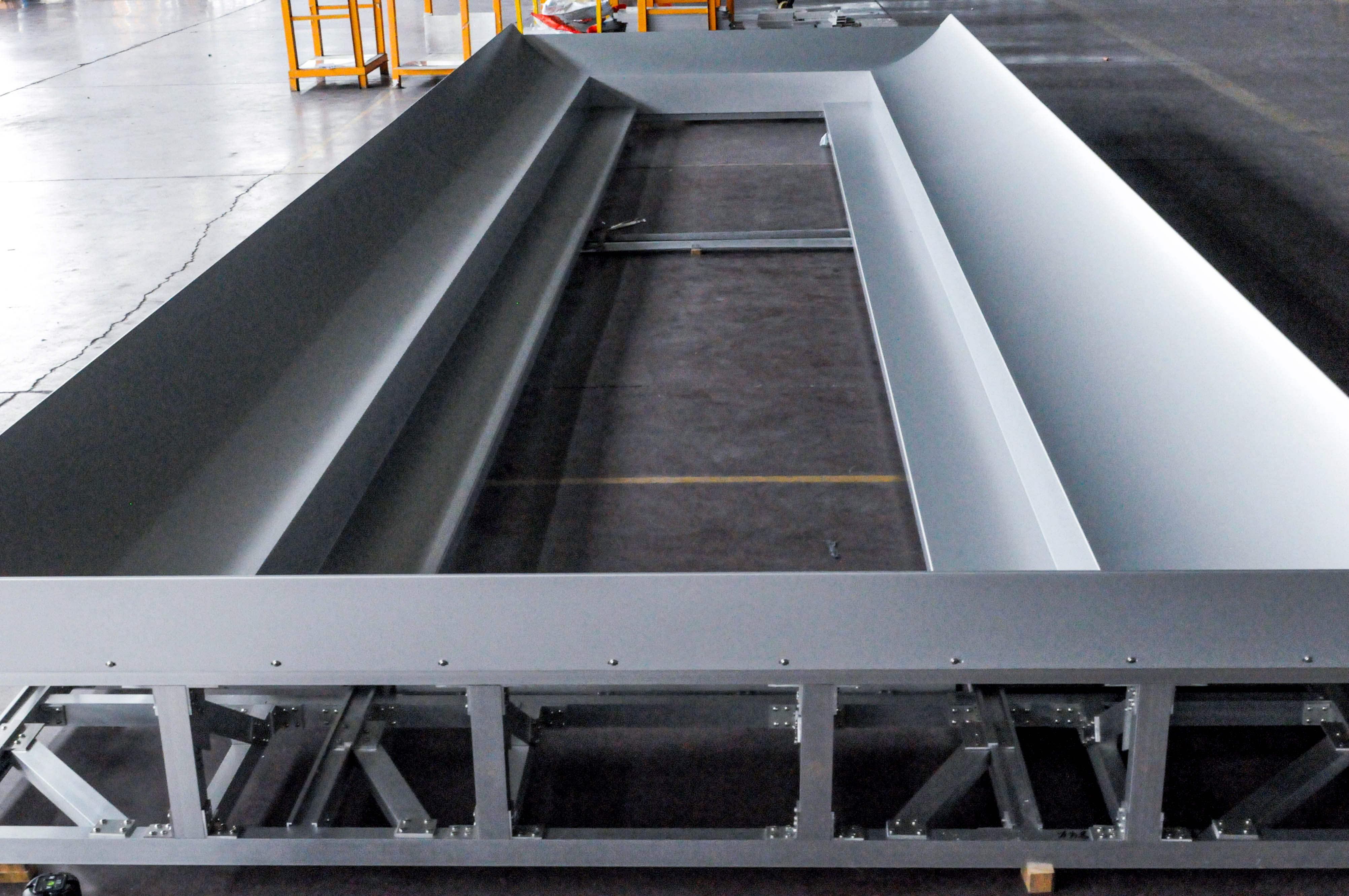 由于該項(xiàng)目幕墻板形狀特殊、工藝要求極高,給我們的加工和運(yùn)輸都帶來了極大的考驗(yàn)。為了保障產(chǎn)品質(zhì)量最后一關(guān),公司使用專用運(yùn)輸支架,該運(yùn)輸支架既環(huán)保又能保證產(chǎn)品不受任何磨損到達(dá)項(xiàng)目工地,充分展示了公司產(chǎn)品定制化、個(gè)性化的特點(diǎn)。